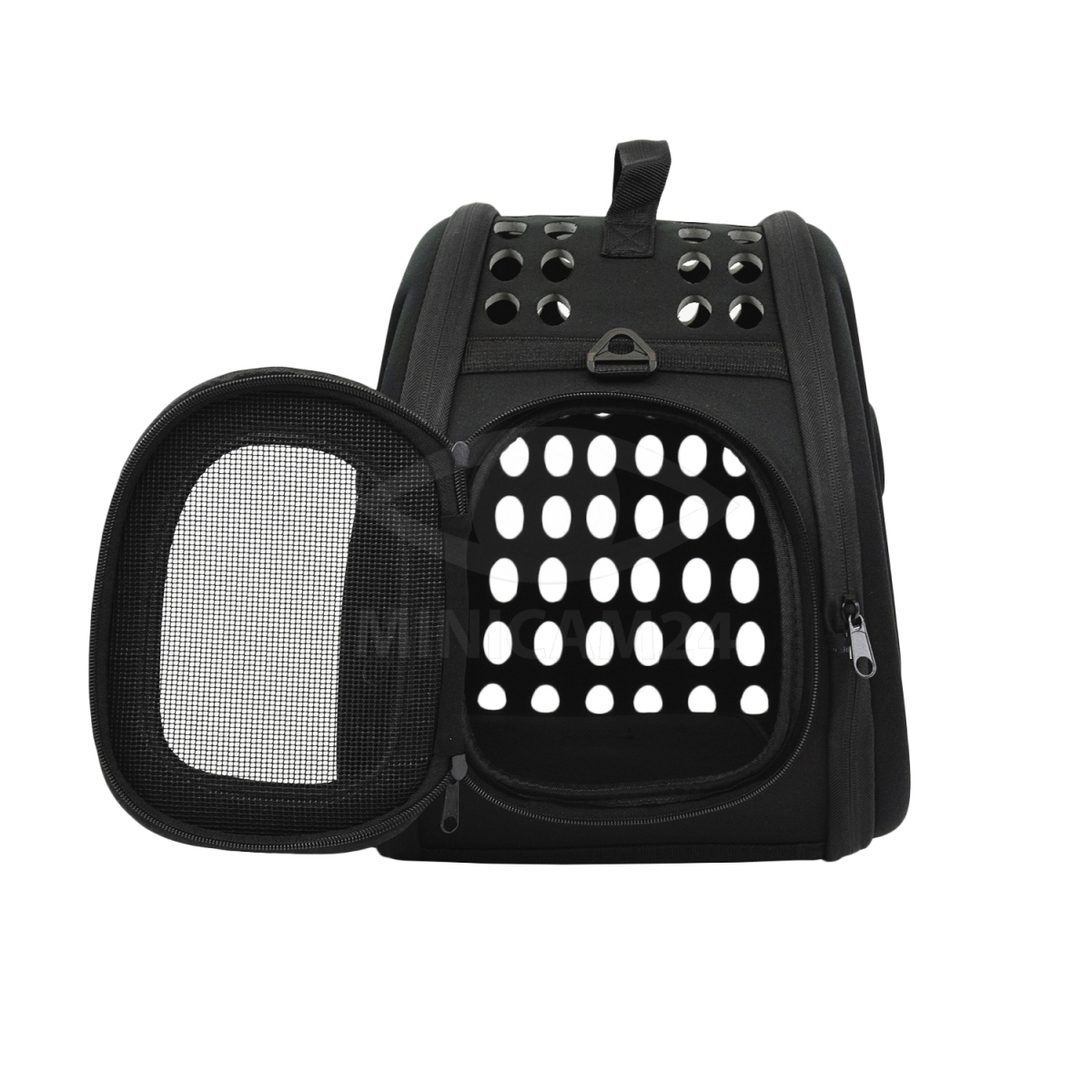 Сумка переноска для собак, кошек Pet Around, черная, складная используется для перевозки питомцев весом до 4 кг. Переноска выполнена из полиэстера, имеет складную конструкцию. Боковой вход оснащен сетчатым окошком, через которое животное может наблюдать за происходящим вокруг. На верхней и задней частях предусмотрены вентиляционные отверстия. Внутри есть мягкая подстилка на липучках. Сумка надежно застегивается на молнию, при всем желании питомец не сможет сбежать без ведома хозяина. Для переноски используется ручка на верхней части или плечевой ремень.